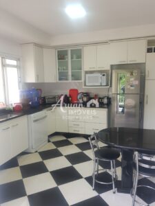 Dispensa, Dependência de Empregados com banheiro, Banheiro social, Lavanderia, churrasqueira, forno a lenha, fogão a lenha, piscina e amplo espaço com portão para reserva de mata atlântica virgem local onde não é permitido construção com alvenaria mais pode ser construído um deck todo em madeira ganhando assim cerca de 25 metros à mais de área.