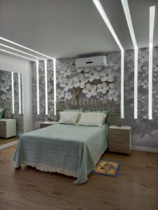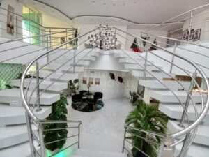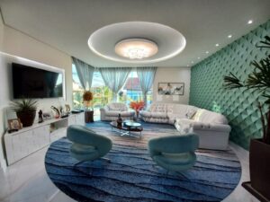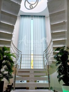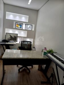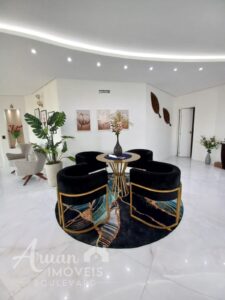 2 escritórios, Sala de cinema, 2 lavabo, Sala intima no piso superior, Ambientes integrados no piso térreo como sala de estar, sala de jantar, sala de TV, com magnífica escada.