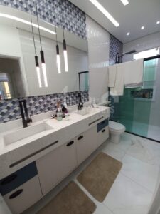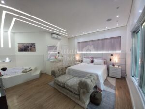 Lindo sobrado de esquina construído em 2 lotes, com 5 suítes, sendo todas com closet e uma máster com hidromassagem, 4 delas com sacada. (sendo 2 suítes no piso térreo e 3 no piso superior)