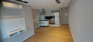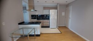 Sala com 02 ambientes, armários nos dormitórios e banheiros, aquecedor a gás, ar condicionado, ilha gourmet, forno, fogão, coifa, e geladeira. Vaga na garagem para 01 carro e piscina.