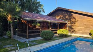 1290 - CASA TERREA DE MADEIRA A VENDA NO CONDOMÍNIO ARUÃ COM 2 LOTES DE 300 M2 CADA