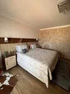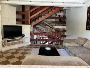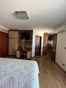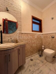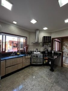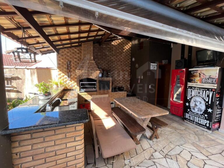 Sobrado com 03 suítes todas com armários, sala de estar/TV, sala de lareira, lavabo, sala de jantar com pé direito alto duplo, cozinha, lavanderia, depósito, área de lazer com churrasqueira, forno de pizza, fogão a lenha e Piscina. Garagem para 04 carros sendo 02 cobertos.