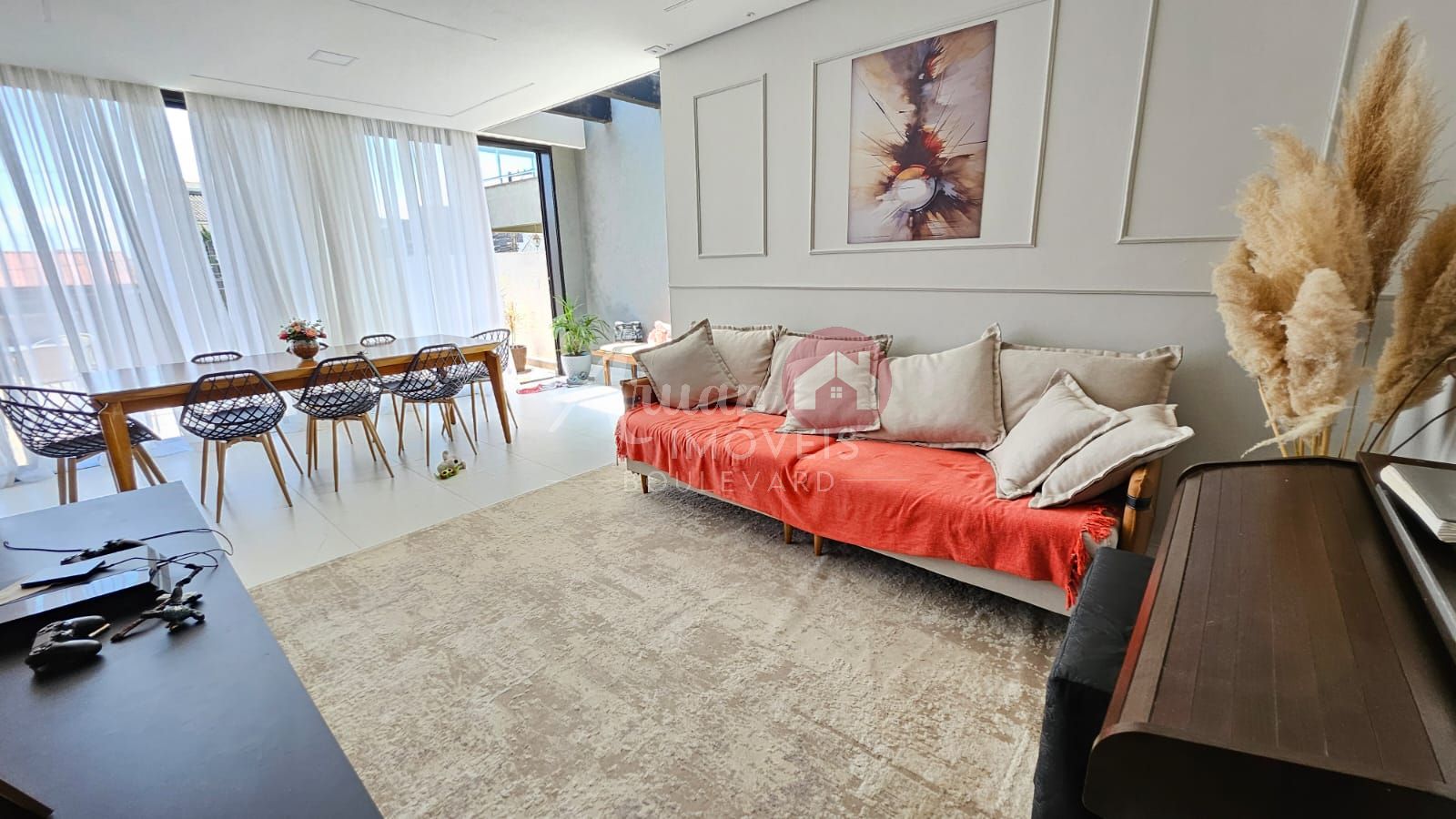 A casa possui 3 dormitórios, sendo 1 deles suíte com closet e os outros 2 são demi-suite