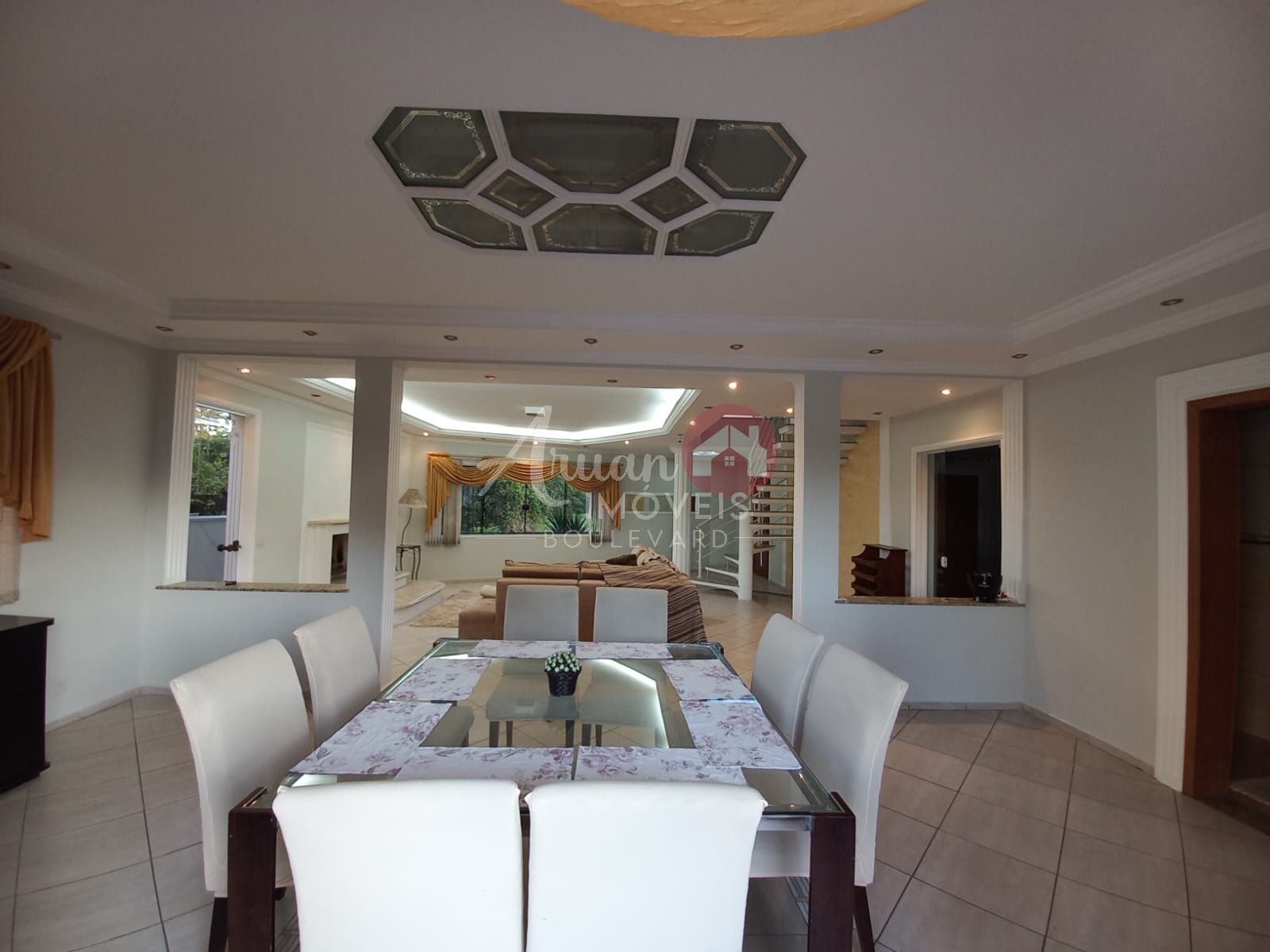 Possui salas de estar/lareira, sala se jantar.