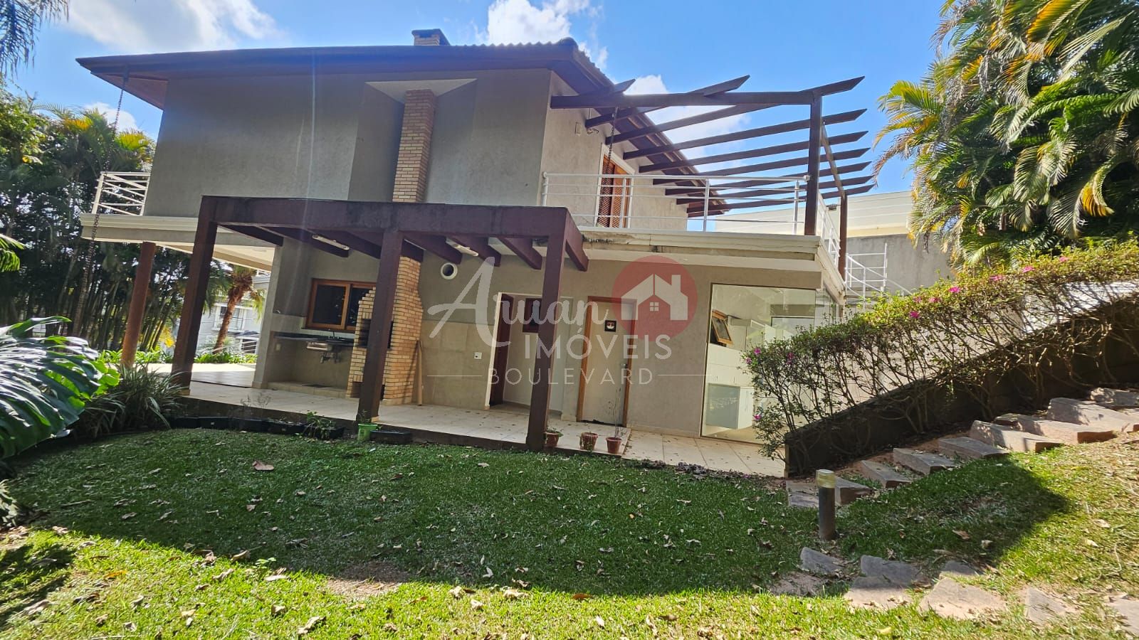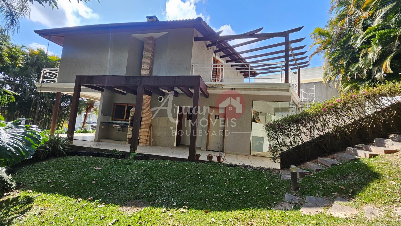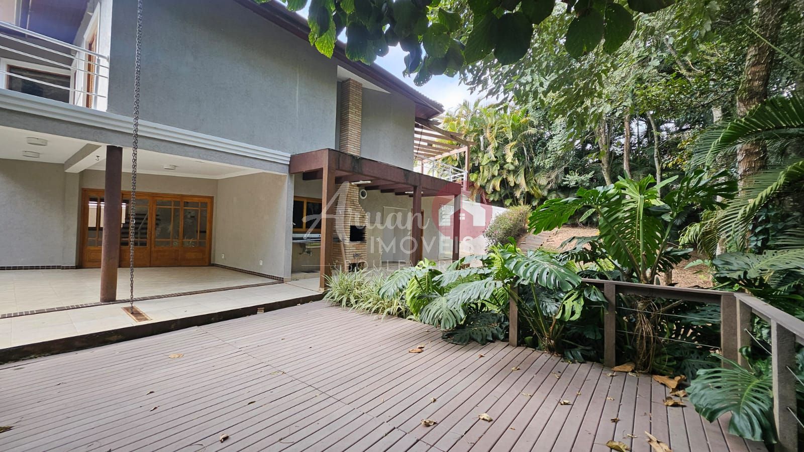 Sala de estar, sala de jantar, lavabo, quarto/multifuncional, cozinha, despensa, lavanderia, churrasqueira, bangeiro externo e piscina. Amplo deck em madeira.