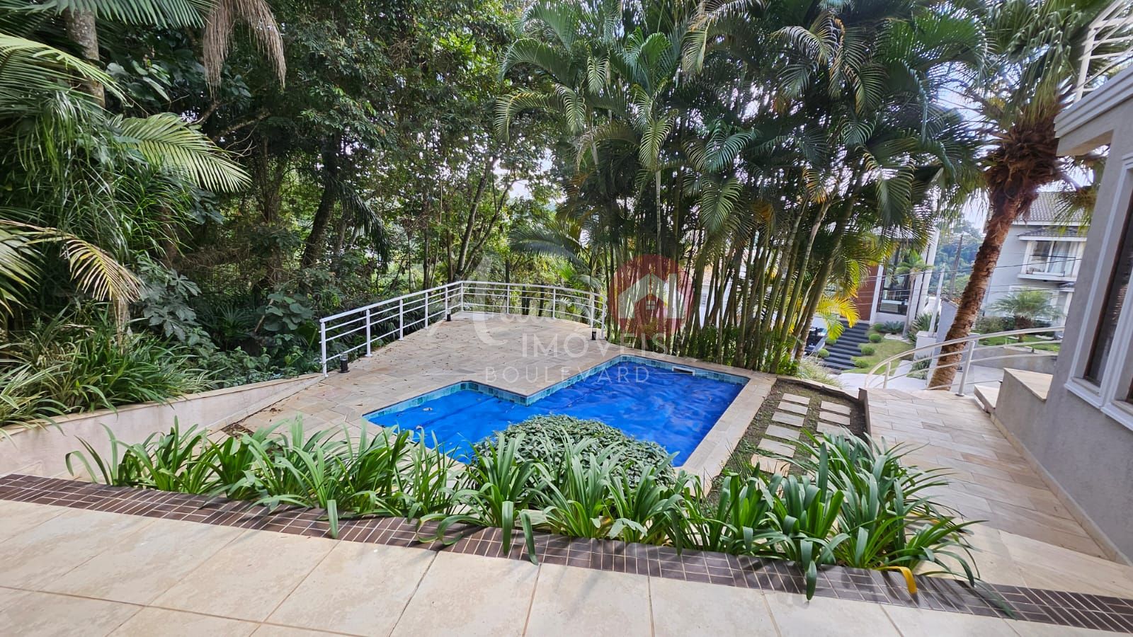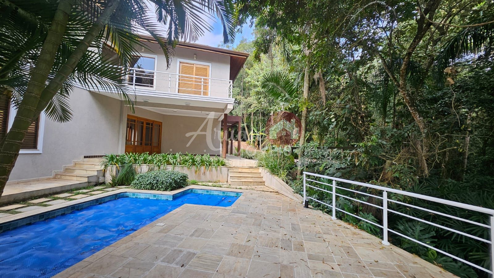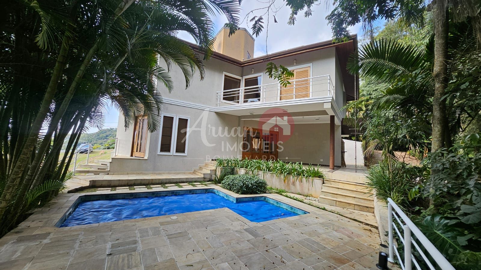 Sala de estar, sala de jantar, lavabo, quarto/multifuncional, cozinha, despensa, lavanderia, churrasqueira, bangeiro externo e piscina. Amplo deck em madeira.