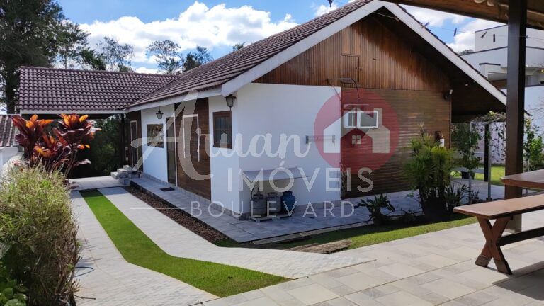3 quartos sendo 1 suite, sala de estar com lareira, sala de jantar, cozinha, lavanderia, quintal espetacular, edicula completa com banheiro, garagem 8 carros