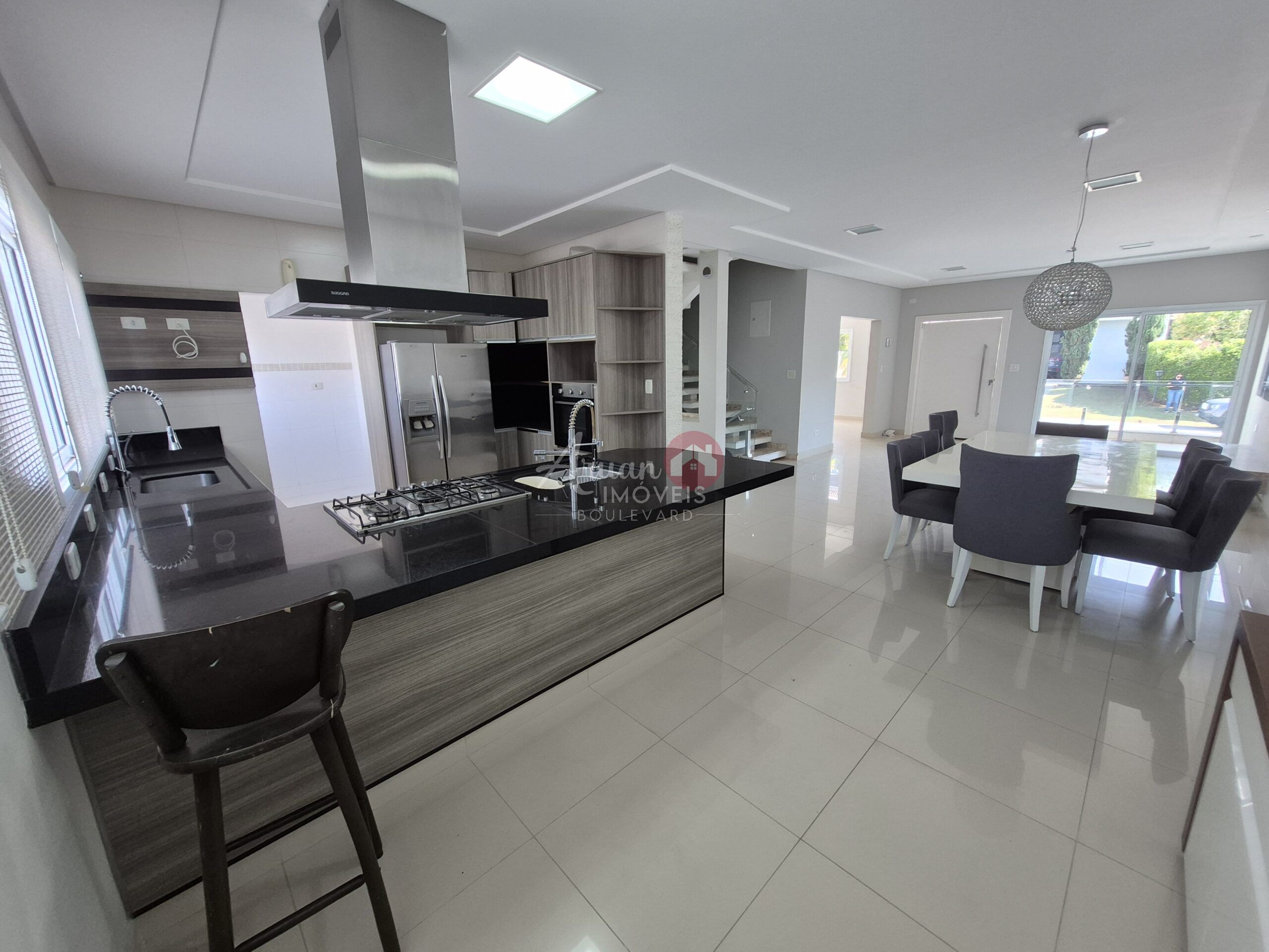 Sala de estar, sala de jantar, sala de tv, cozinha conceito aberto, lavanderia, despensa, espaço gourmet, escritório com banheiro, piscina maravilhosa, com quintal amplo, garagem para 6 carros