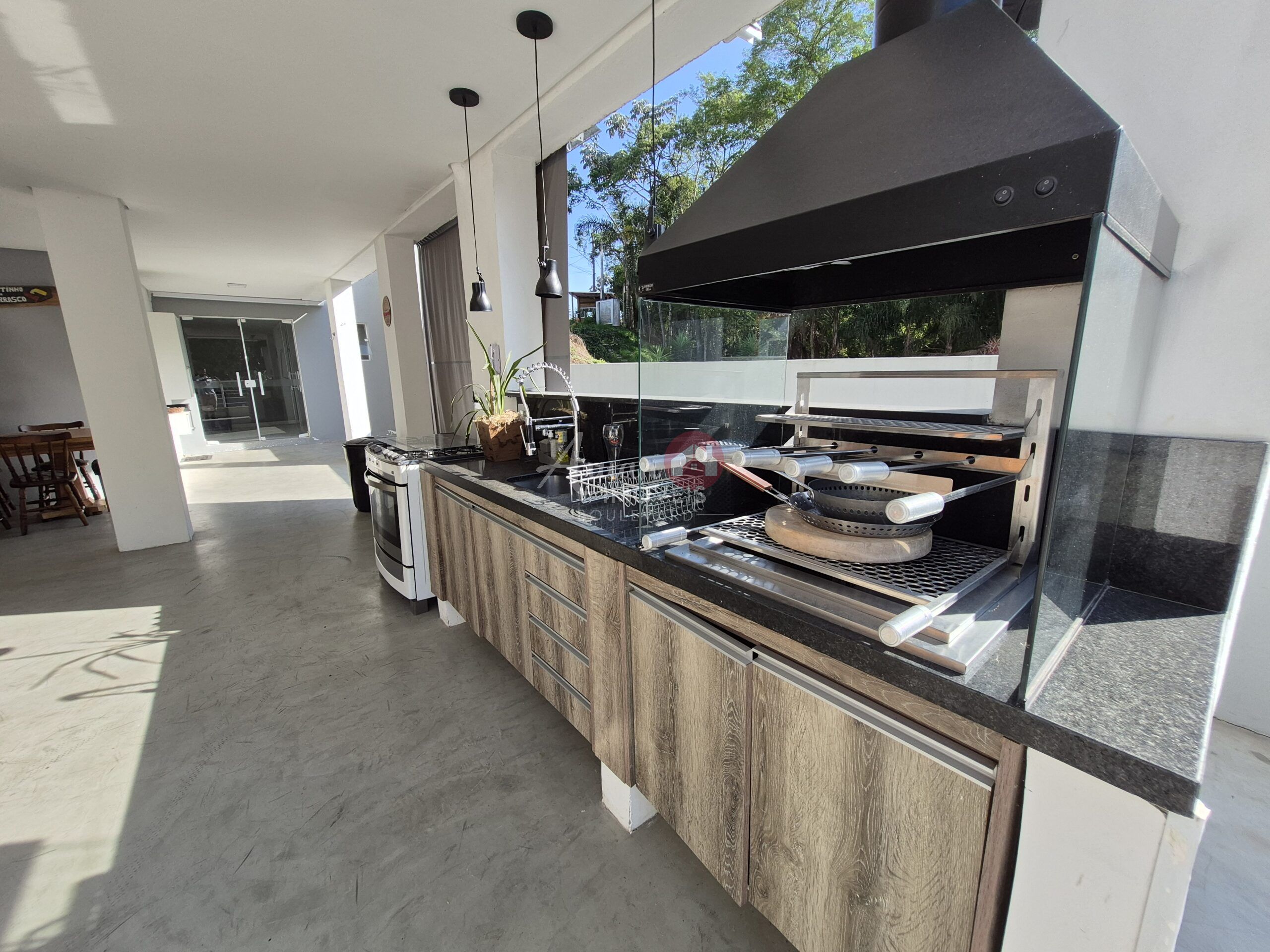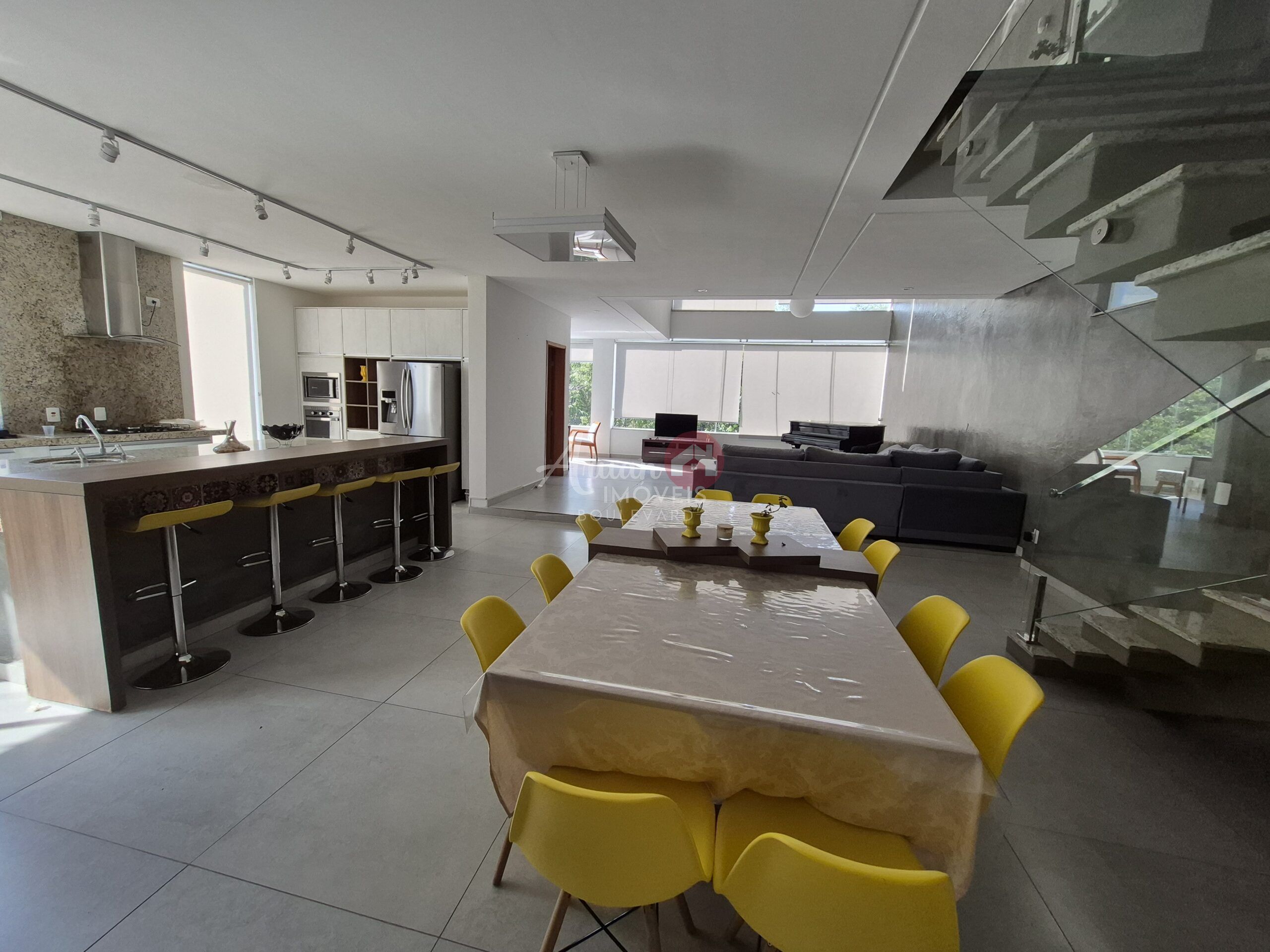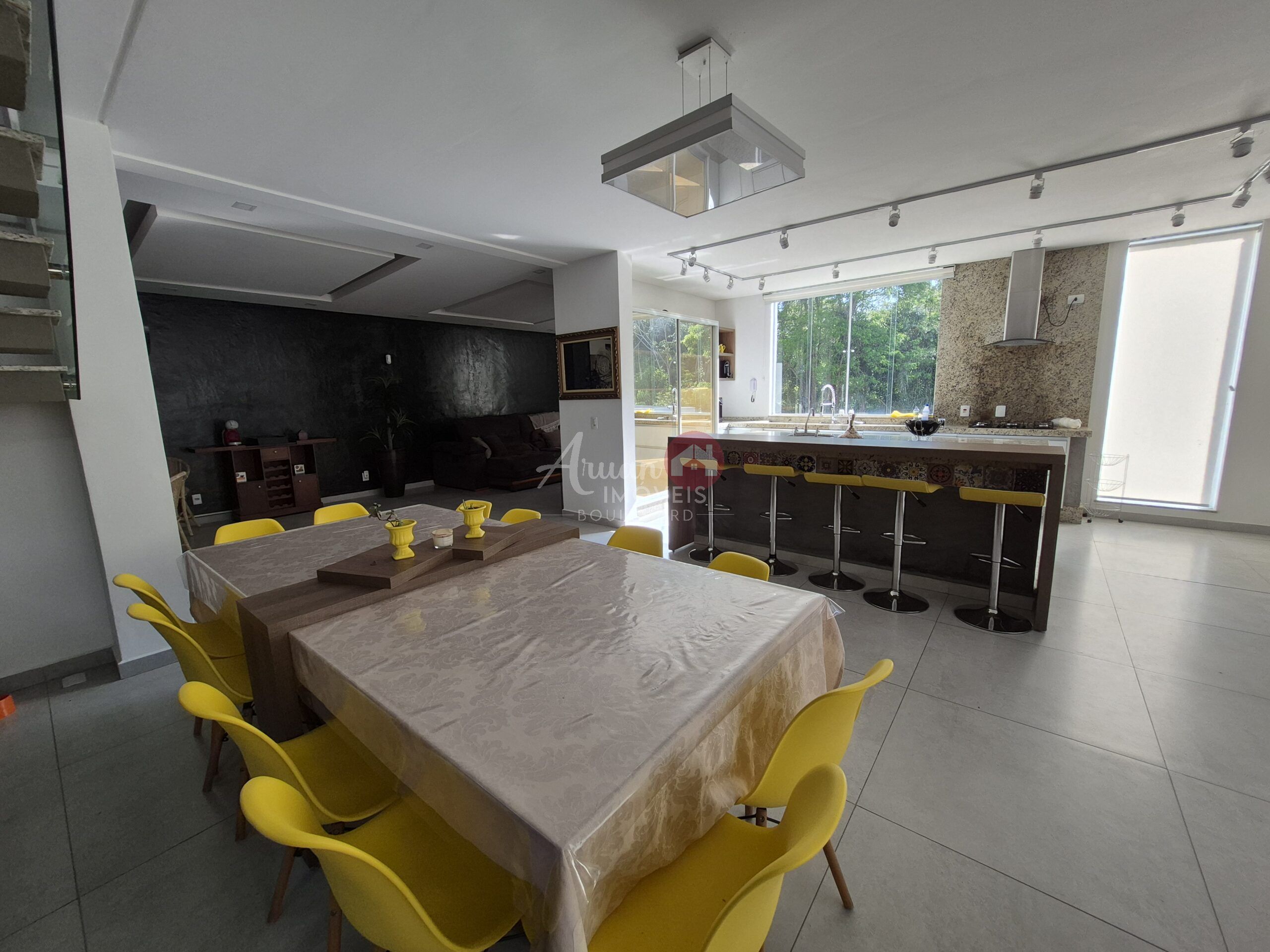 4 suítes sendo master com hidromassagem e closet, sala estar, sala de jantar, sala de tv, escritório, cozinha conceito aberto, lavanderia, espaço gourmet completo, piscina maravilhosa quintal amplo com fundo reserva garagem para 6 carros