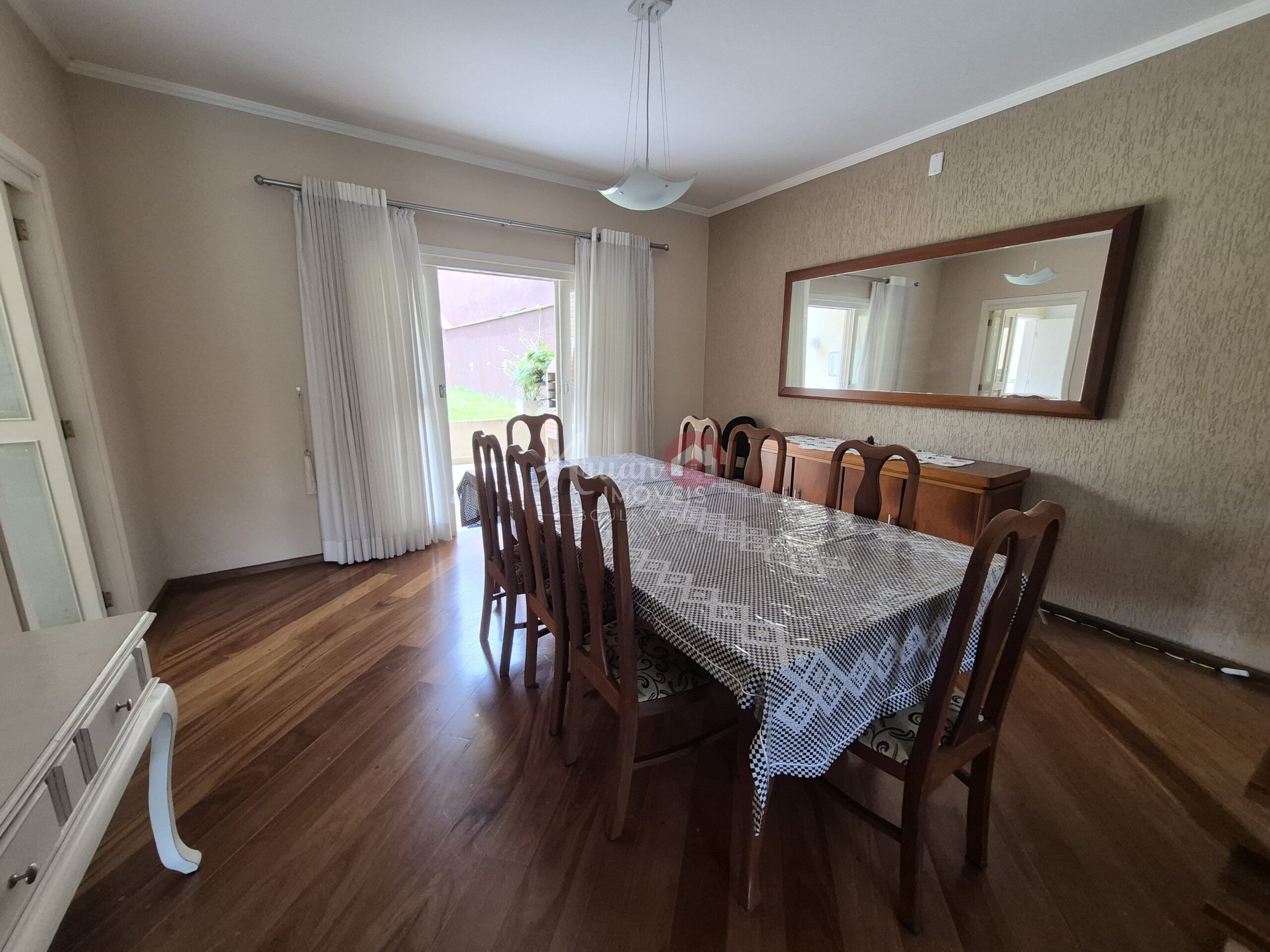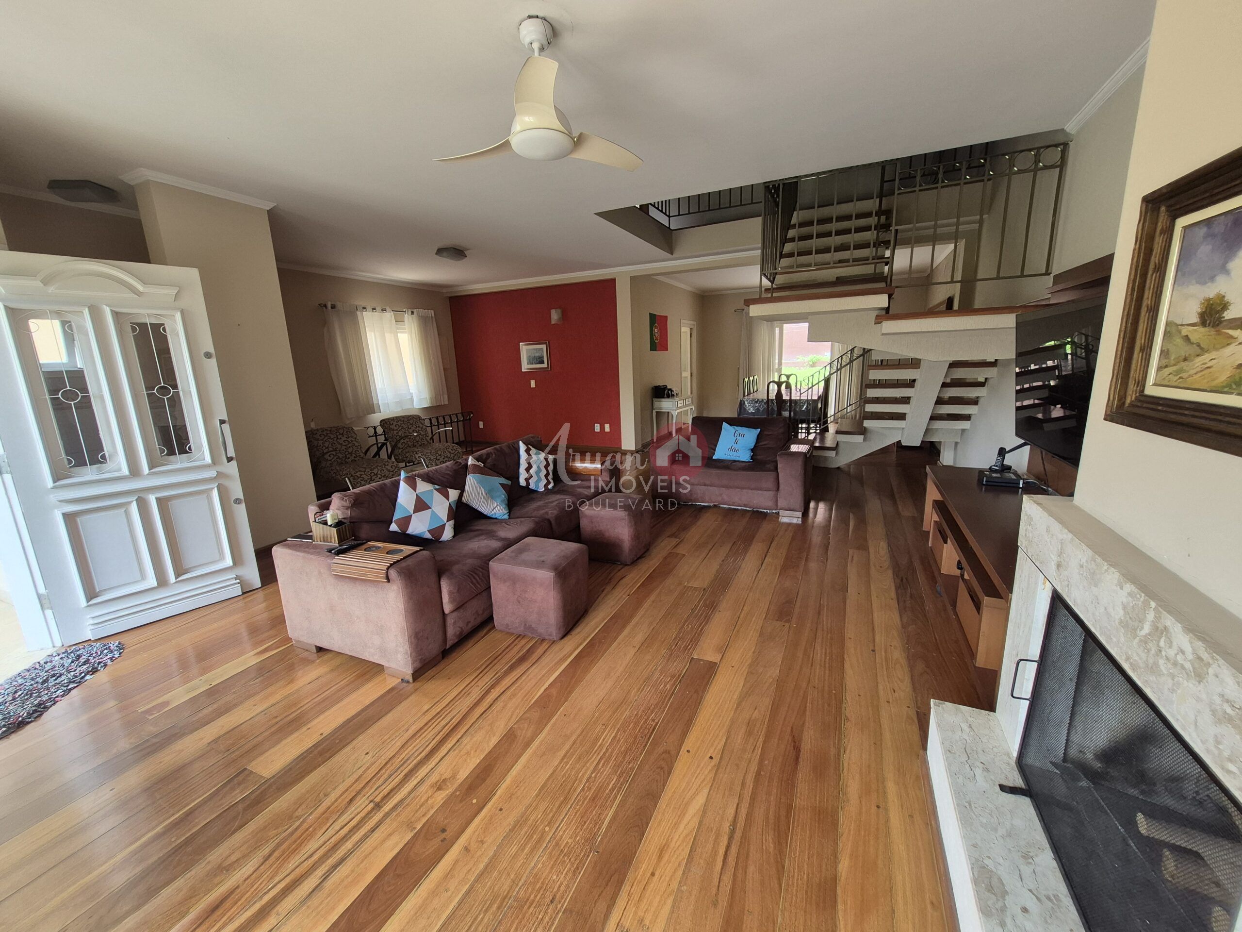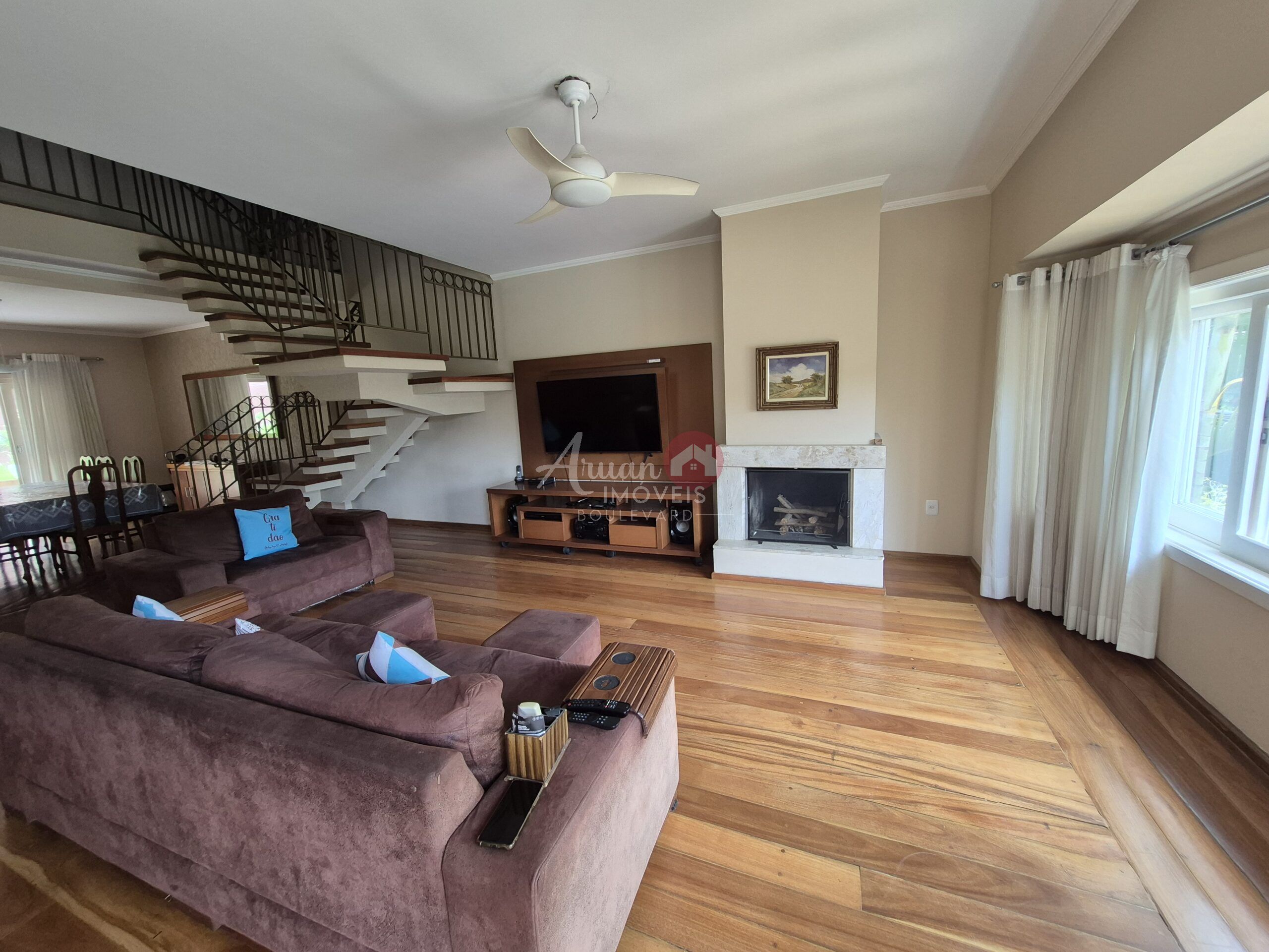 Sala de esta com lareira, sala de jantar, cozinha, lavanderia, escritório, deposito, quintal amplo, garagem para 6 carros.