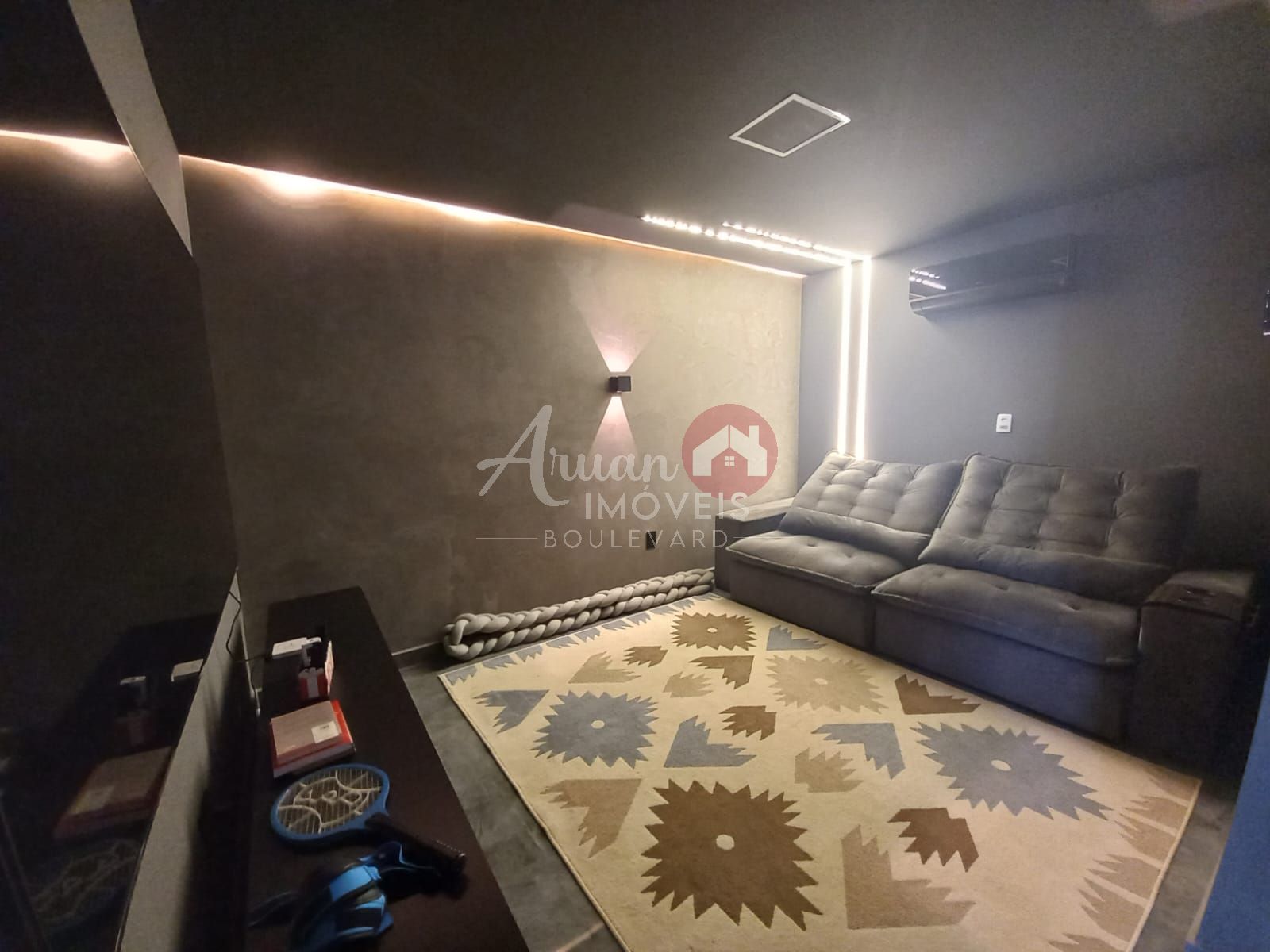 Área de serviço, sala de cinema, 1 dormitorio, 1 banheiro.