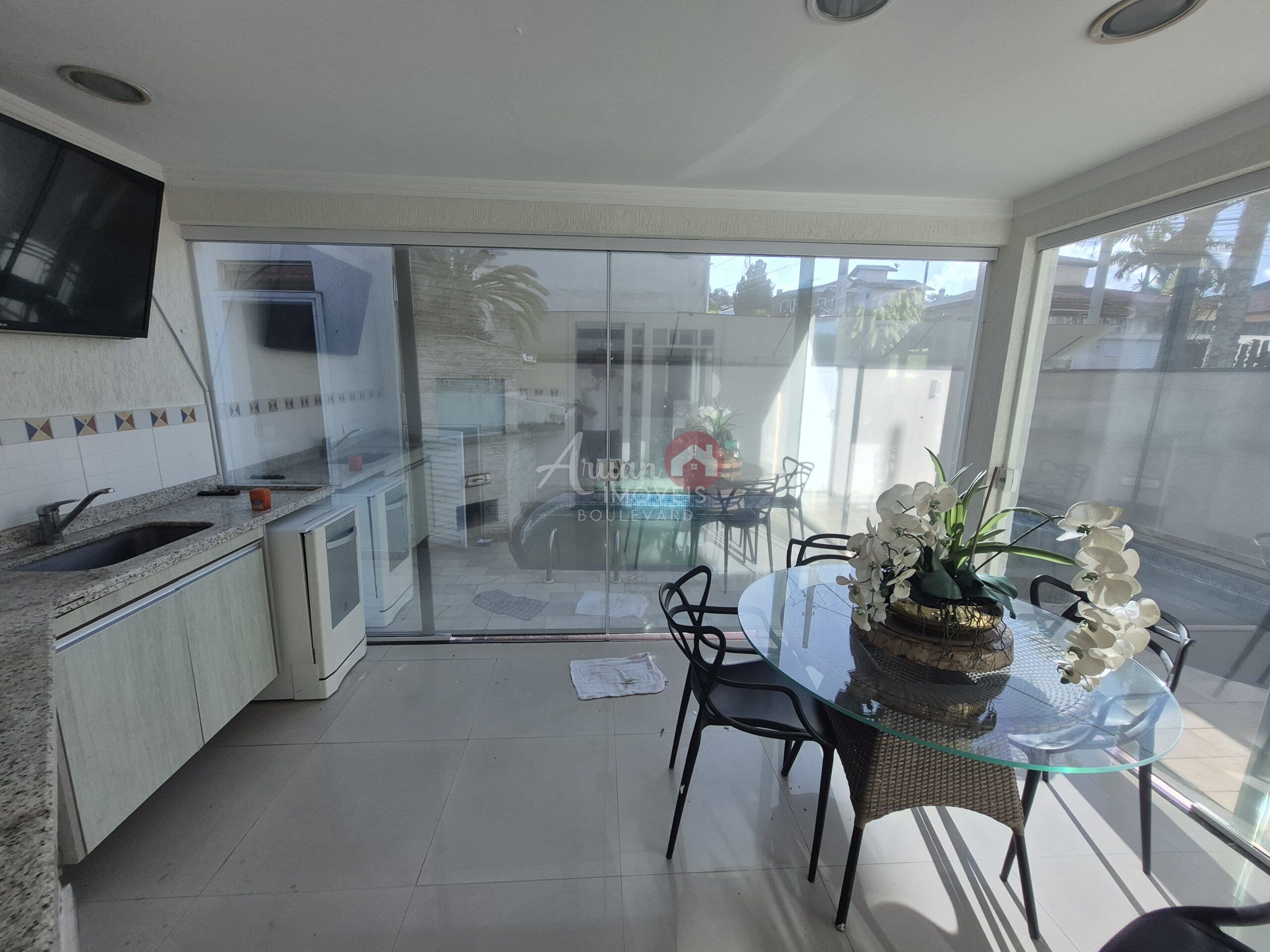 3 suítes, sala de estar, sala de jantar, escritório cozinha, despensa, lavanderia, espaço gourmet, piscina, garagem para 4 carros