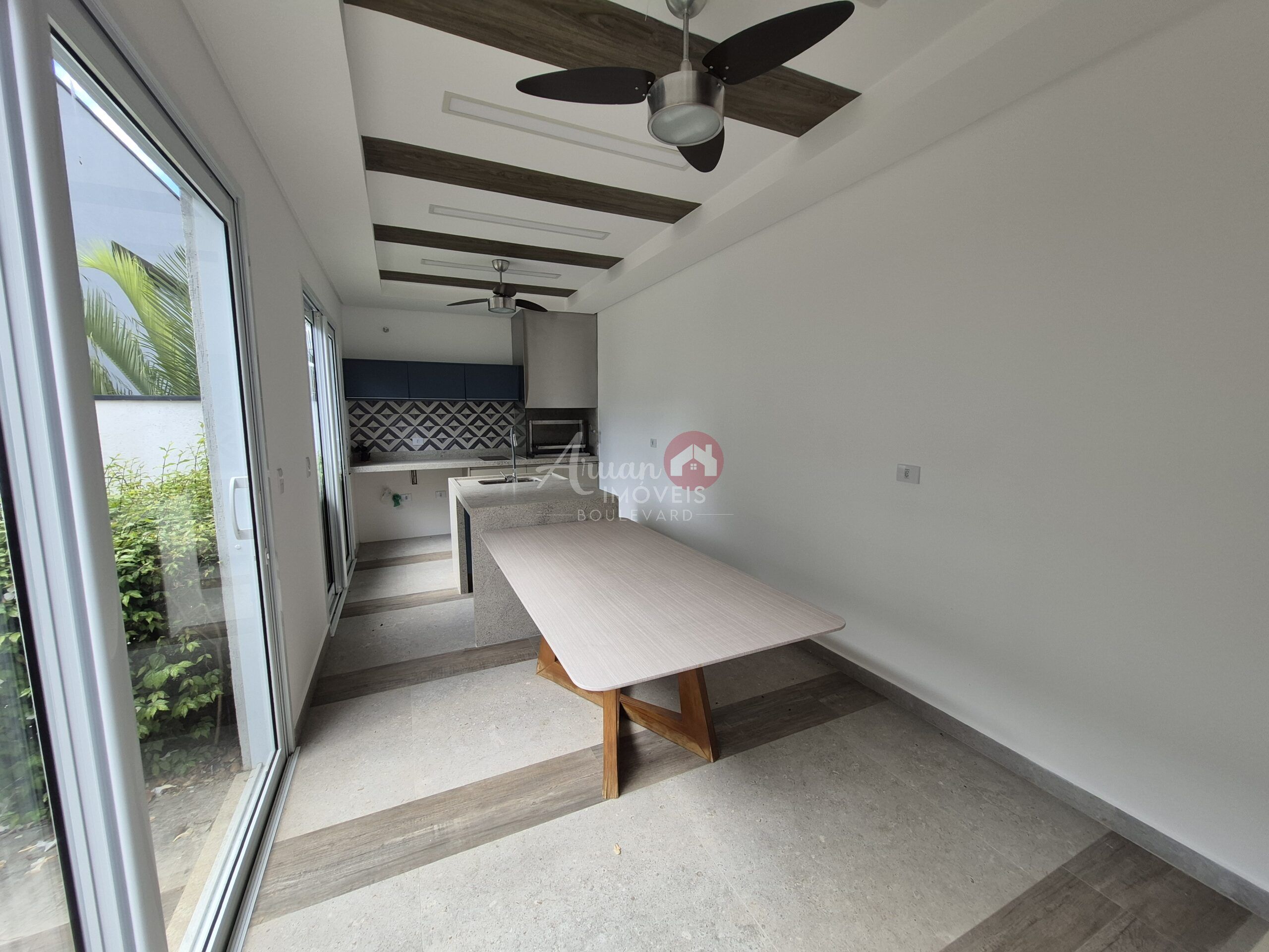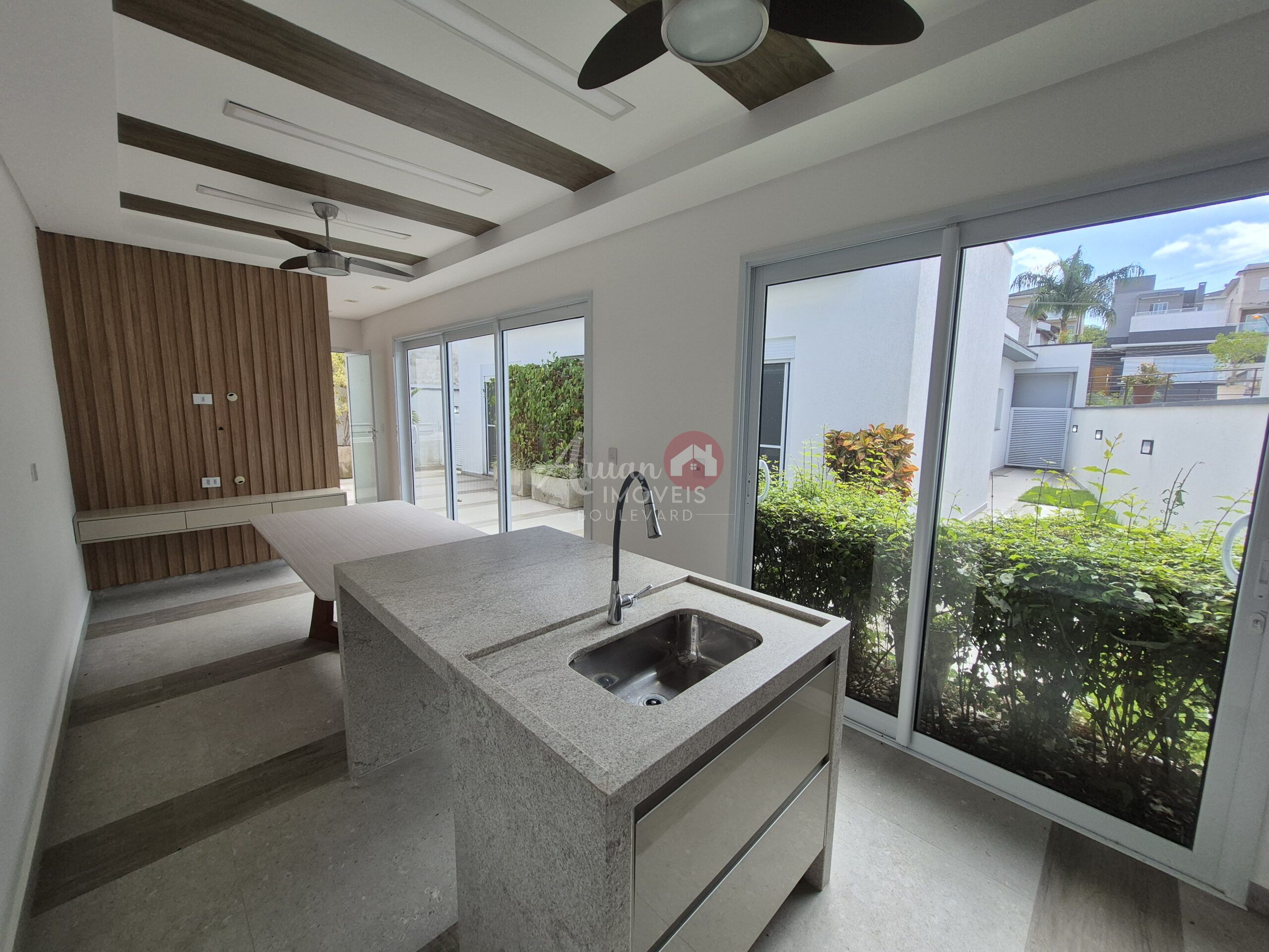 3 suítes sendo a suite master com closet, sala de estar com pe direto duplo, sala de jantar, cozinha com planejados, despensa, lavanderia, espaço gourmet, jacuzzi, garagem para 4 carros