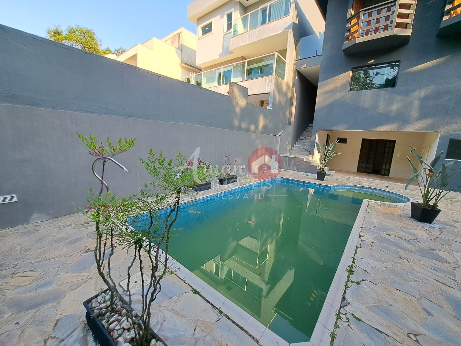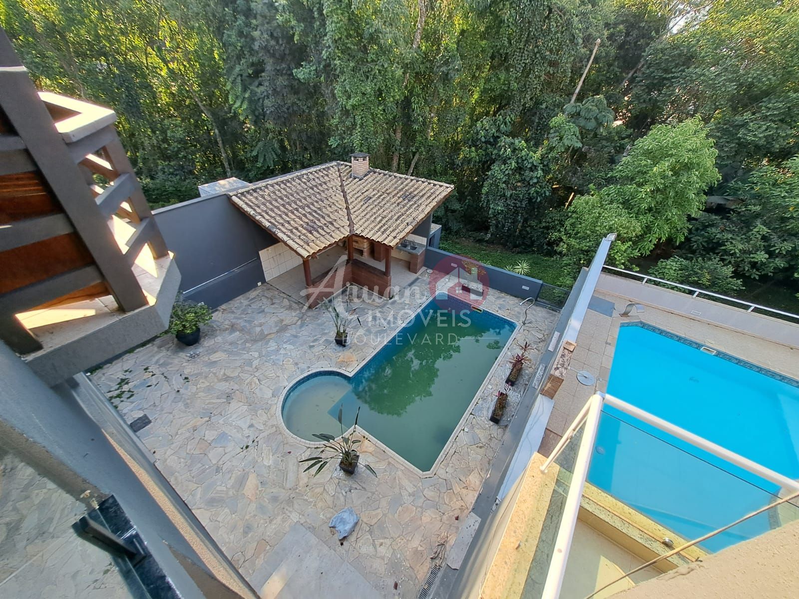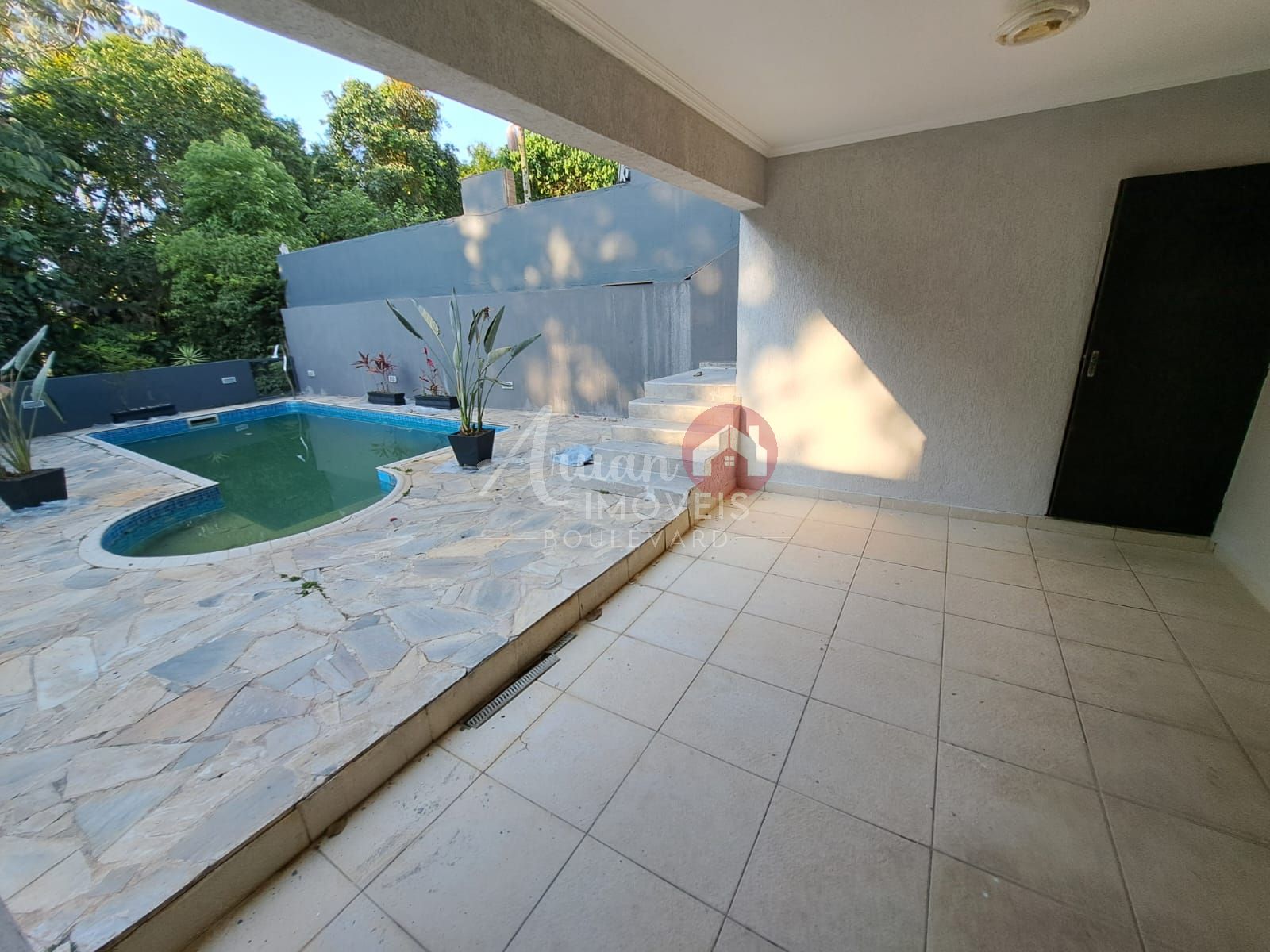 Piscina com uma área de lazer ampla
